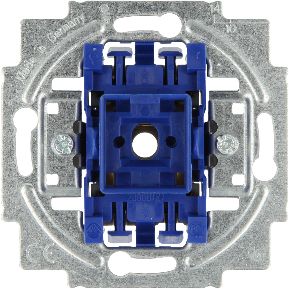 Wippschalter-Einsatz mit Steckanschluss für Kreuzschaltungen zur Unterputz-Installation.