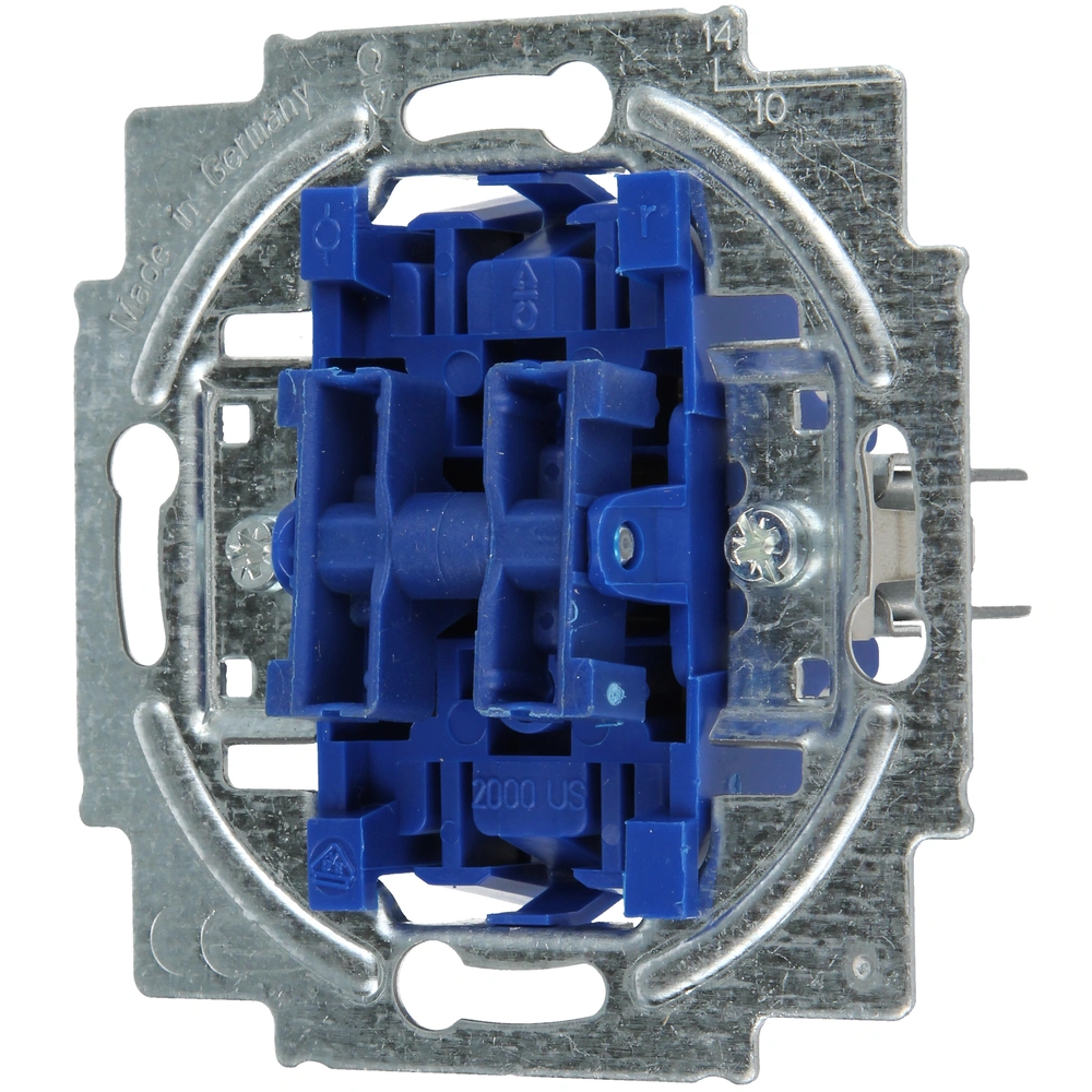 Wippschalter-Einsatz mit Glimmlampe und Steckanschluss für Serienschaltungen zur Unterputz-Installation.
