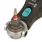 Kompakte Zyklop-Knarre mit magnetischer Aufnahme für 1/4" Bits und 3/8" Nüsse. Der auf 0, 15 und 90° arretierbare Kopf ermöglicht den Einsatz des Werkzeugs als Knarre und Ratschen-Schraubendreher...