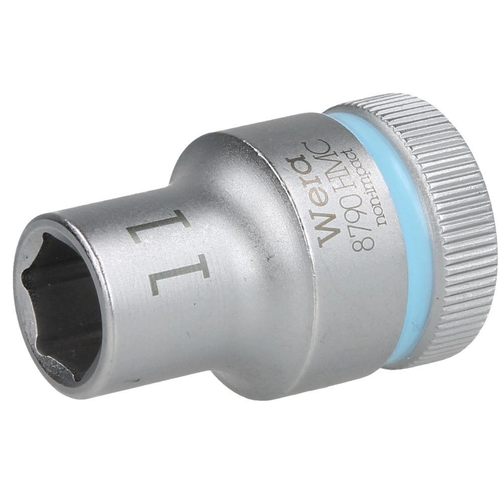 Socket for the use in manual and power tool operations. The socket is equipped with "Take it easy" size colour coding to find the required size easily and fast. It has ball stop grooves and is suitable for hexagon head screws and nuts.