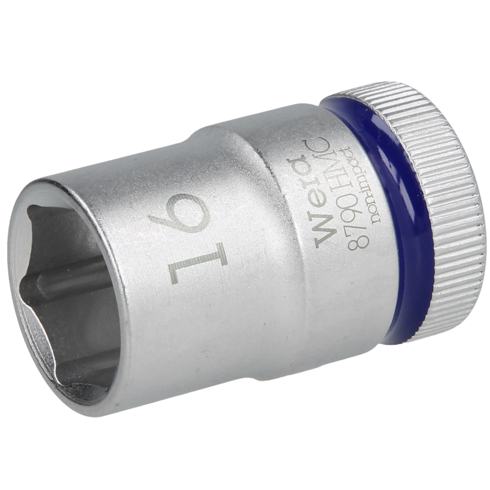 Socket for the use in manual and power tool operations. The socket is equipped with "Take it easy" size colour coding to find the required size easily and fast. It has ball stop grooves and is suitable for hexagon head screws and nuts.