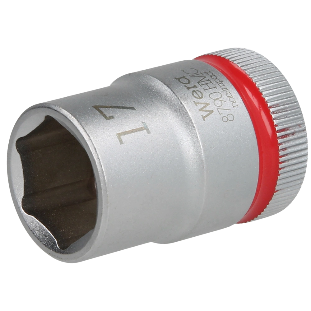 Socket for the use in manual and power tool operations. The socket is equipped with "Take it easy" size colour coding to find the required size easily and fast. It has ball stop grooves and is suitable for hexagon head screws and nuts.