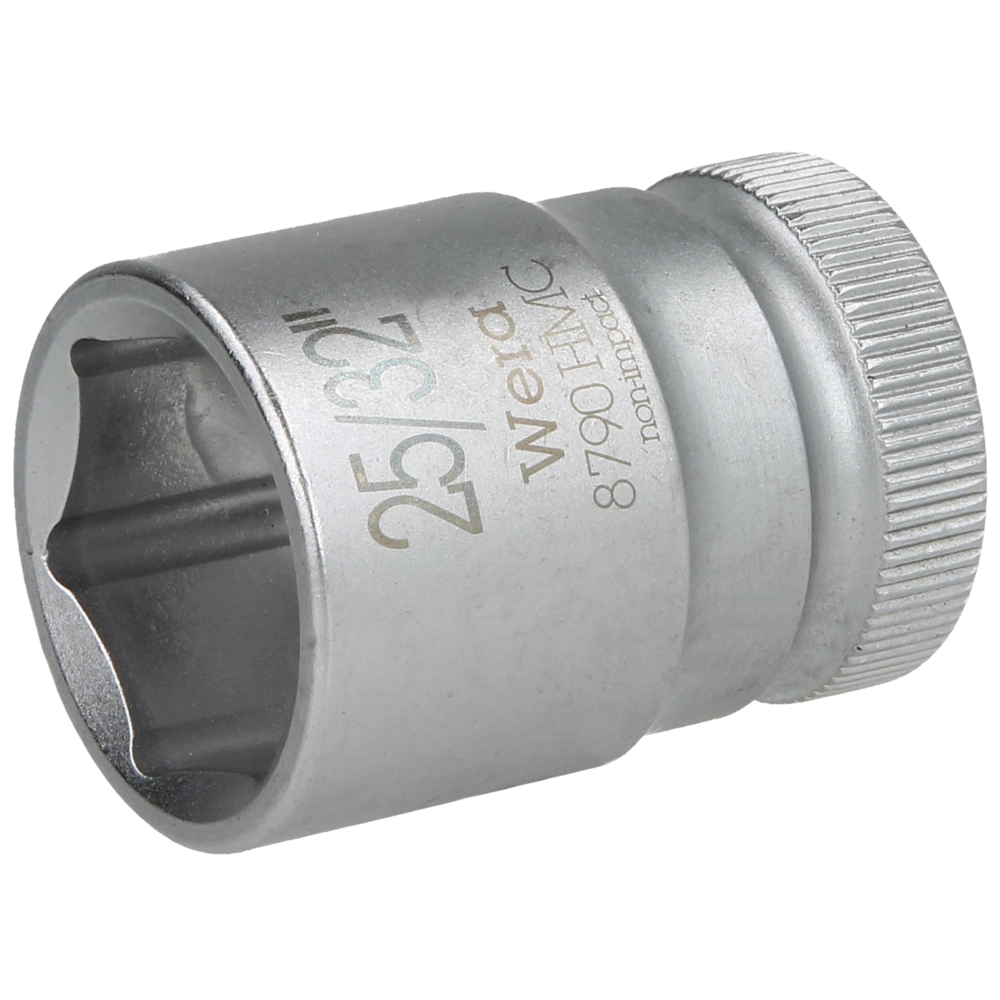Socket for the use in manual and power tool operations. The socket is equipped with "Take it easy" size colour coding to find the required size easily and fast. It has ball stop grooves and is suitable for hexagon head screws and nuts.