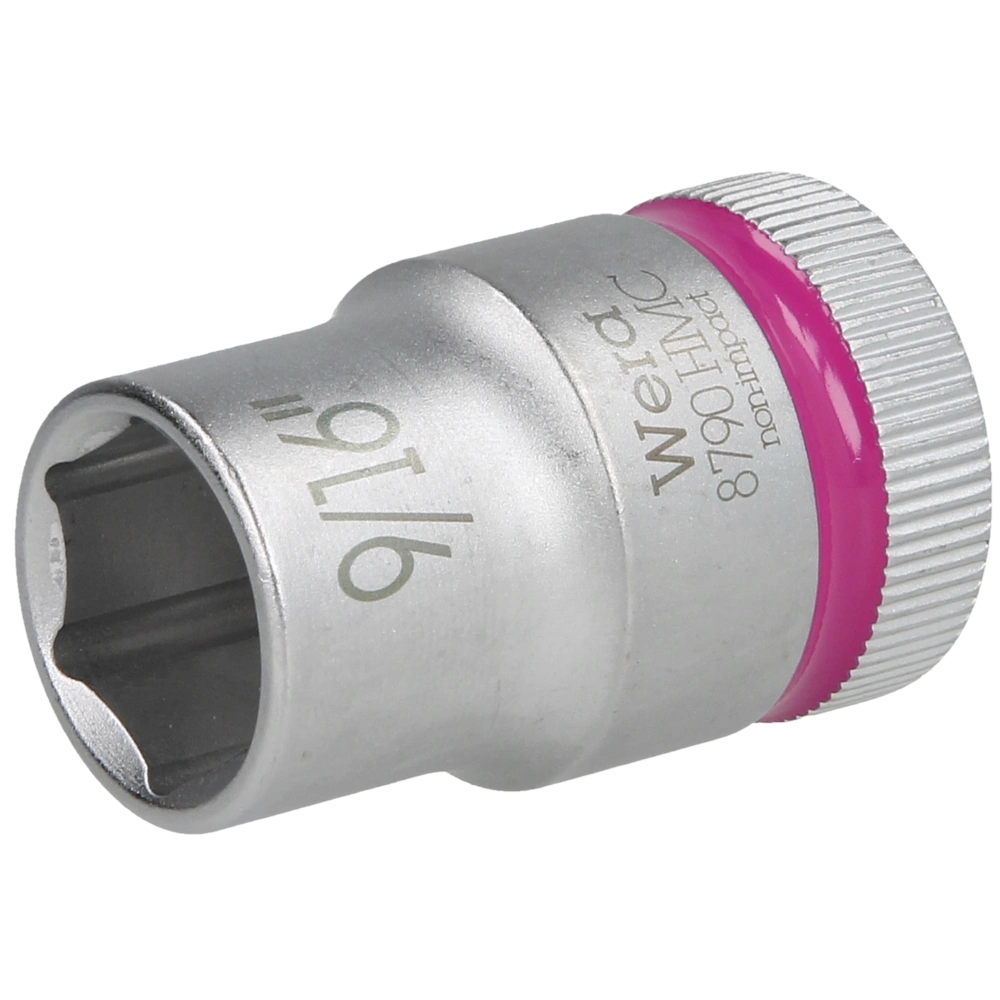 Socket for the use in manual and power tool operations. The socket is equipped with "Take it easy" size colour coding to find the required size easily and fast. It has ball stop grooves and is suitable for hexagon head screws and nuts.