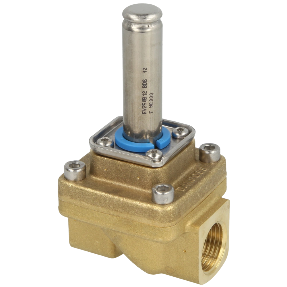 All product information2/2-way solenoid valve with assisted lift diaphragm for gaseous and liquid media in closed systems such as heating circuits as well as in machine and system construction. The valve is normally closed and designed for the installation with vertical magnet.
