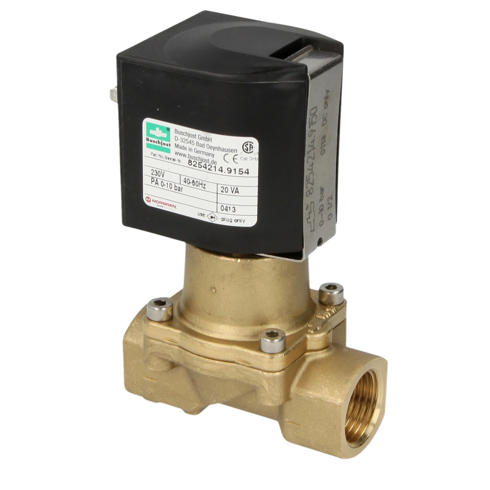 Compact solenoid valve with closing damping and EPDM seal for water, hot water and vapour. The valve is force pilot operated without differential pressure and, therefore, suitable for vacuum and systems with low or fluctuating pressure conditions.