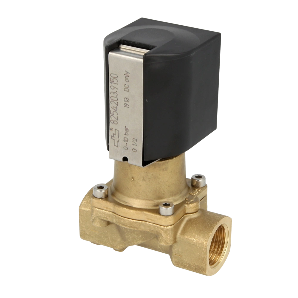 Compact solenoid valve with closing damping and FPM seal for oils and fuels. The valve is force pilot operated without differential pressure and, therefore, suitable for vacuum and systems with low or fluctuating pressure conditions.