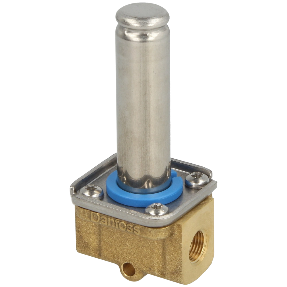 2/2-way solenoid valve with assisted lift diaphragm for gaseous and liquid media in closed systems such as heating circuits as well as in machine and system construction. The valve is normally closed and designed for the installation with vertical magnet.