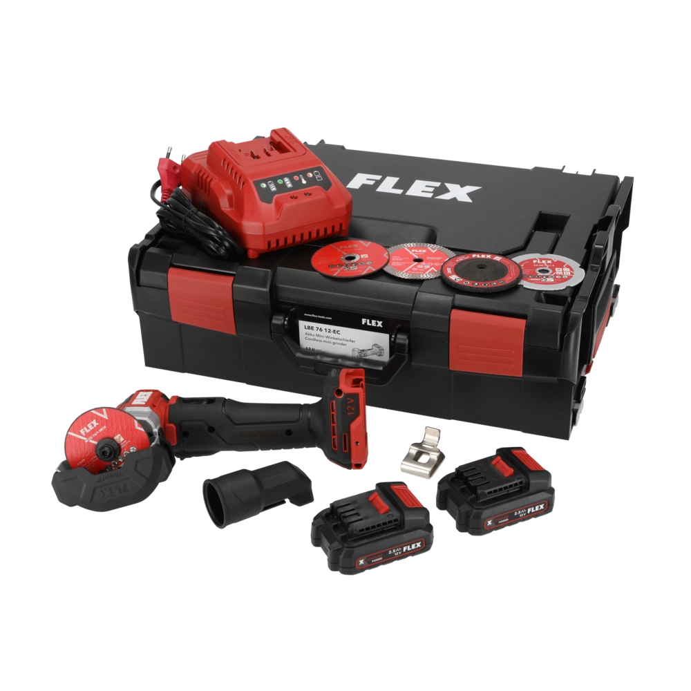 A rechargeable mini angle grinder set for precise cuts, fast charging times and clean results in hard materials.