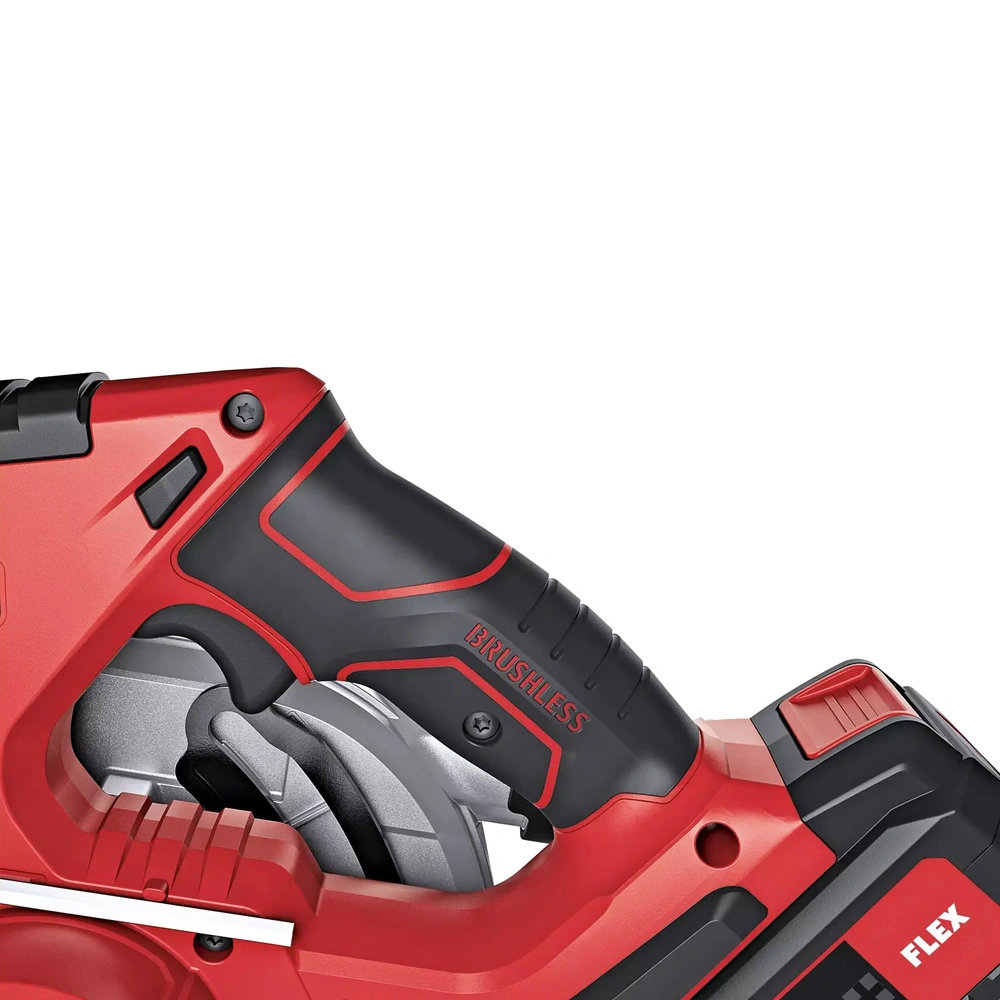 The circular saw can be operated with all FLEX 18V battery packs and is supplied in the practical L-BOXX®.