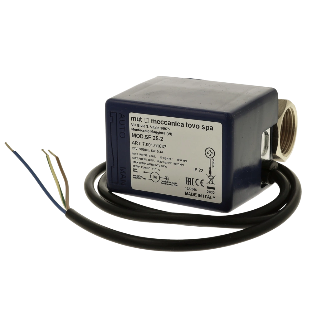 Motorised 2-way zone valve for heating, cooling and solar circuits. The valve is controlled via an electric motor and is closed when currentless. Mounting of up to two auxiliary switches is possible...