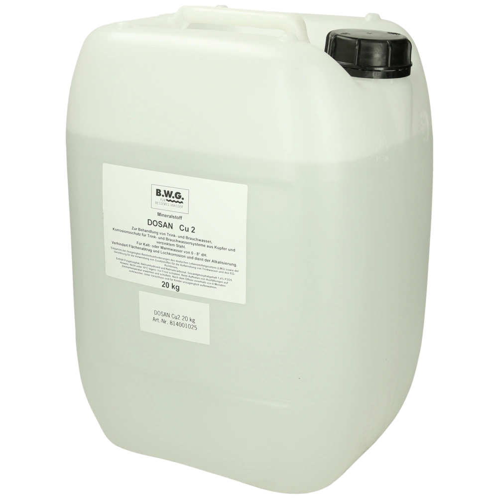 All product informationLiquid mineral combination in food quality for corrosion protection in water-bearing system parts made of copper or steel. Dosan Cu2 neutralises the free carbon dioxide and, thereby, raises the pH value. It is used for soft to very soft water.