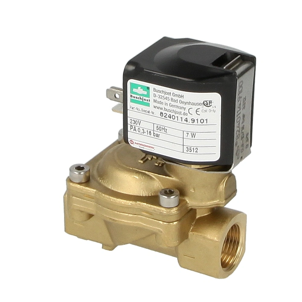 Compact solenoid valve with closing damping and EPDM seal for water, hot water and vapour. The valve is actuated indirectly and requires a minimal differential pressure for opening. It provides a high flow rate, is resistant to pressure and has a lower power consumption than directly activated solenoid valves.