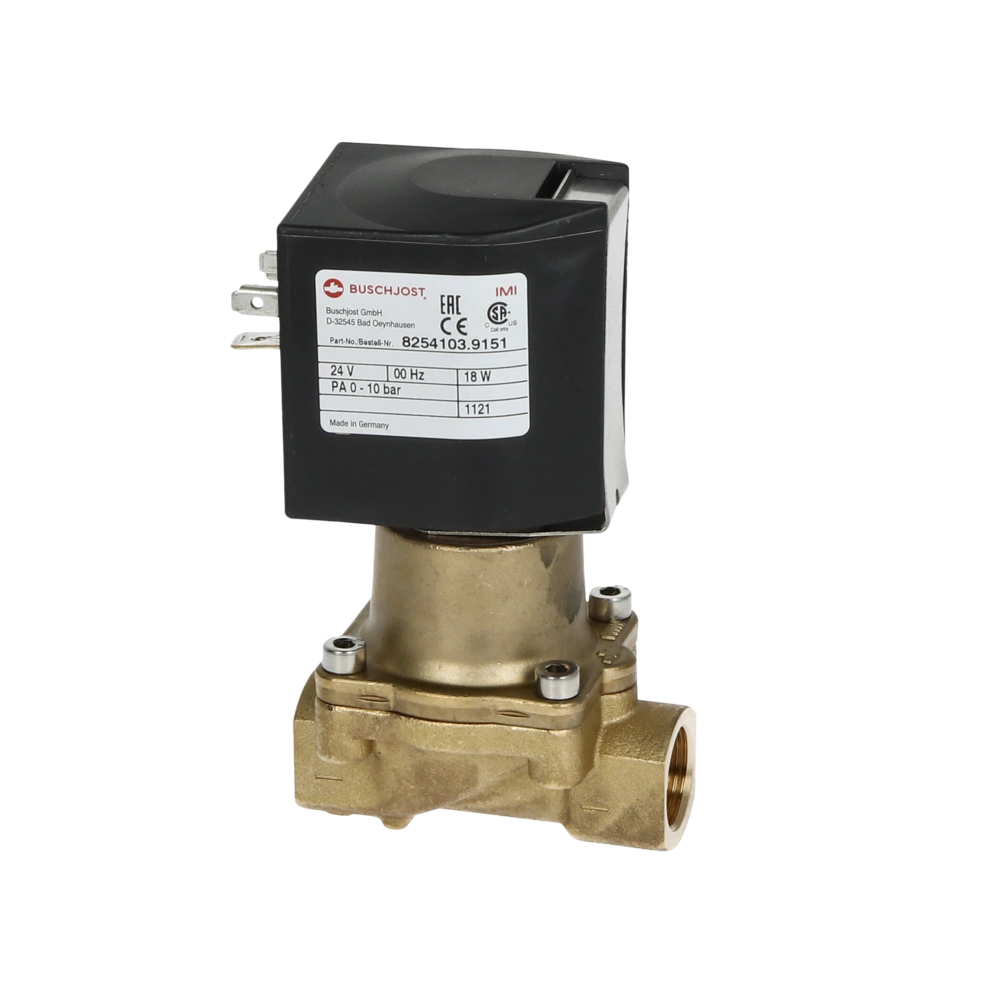 Compact solenoid valve with closing damping and FPM seal for oils and fuels. The valve is force pilot operated without differential pressure and, therefore, suitable for vacuum and systems with low or fluctuating pressure conditions.