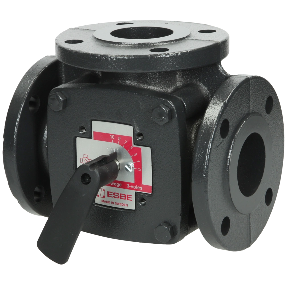 3-way mixing valve with flange connection for precise mixing and flow regulation in large heating, hot water and air- conditioning systems. Thanks to the straight passage, the mixing valve can be operated both manually and by a motorised actuator. The special control curve in the chrome-plated cylinder plug ensures even temperature control. The 90° rotatable scale enables flexible installation.