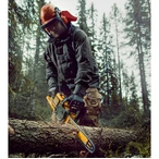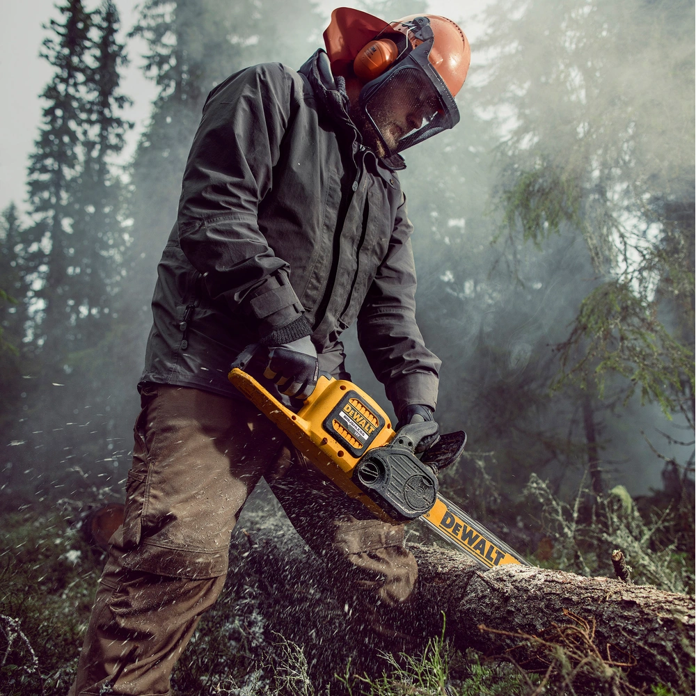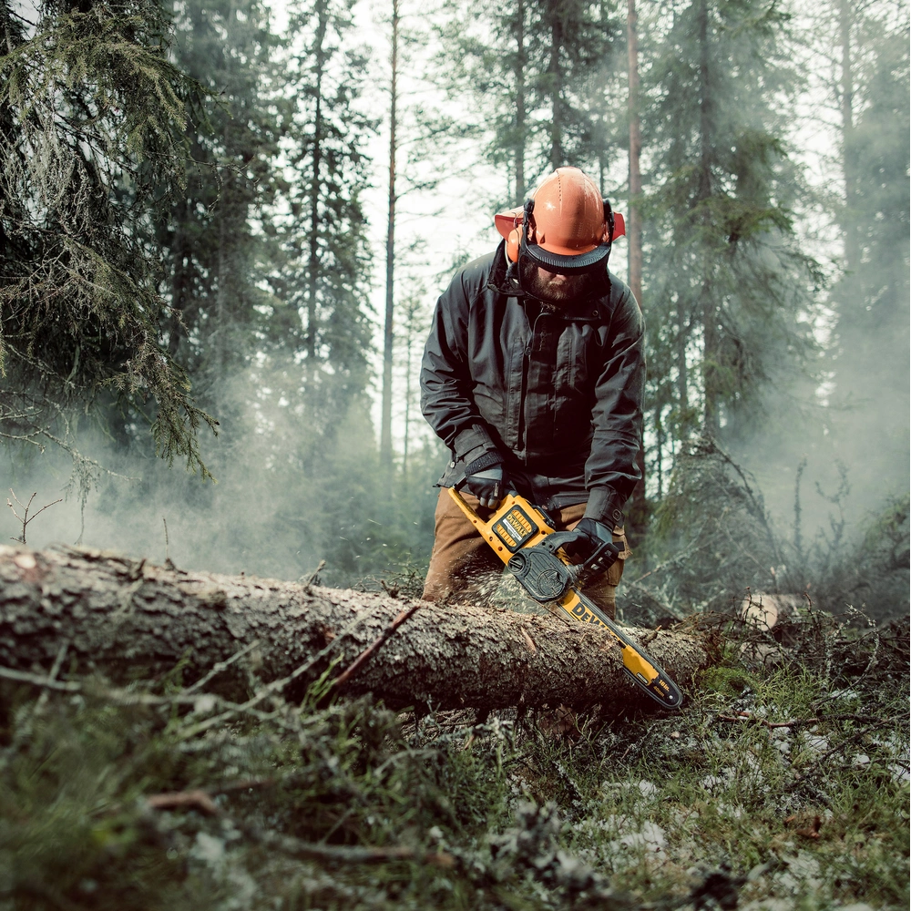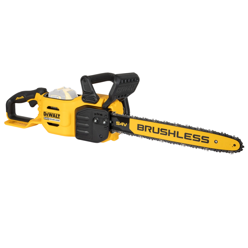 The cordless chainsaw is as powerful as a petrol-powered saw thanks to 54V battery technology. Its clear advantages are low noise pollution and non-existing petrol fumes. It is fitted with a brushless motor, a compact design and a long tool life. The saw has automatic chain oiling, chain tensioning and bar fitment are tool-free. Moreover, it includes a tool-free oil tank closure, a semi-transparent oil tank and a chain brake. Its rubberised handle and ergonomic design with optimised centre of gravity ensure pleasant working conditions. Standard saw chains with 3/8" pitch are applied.