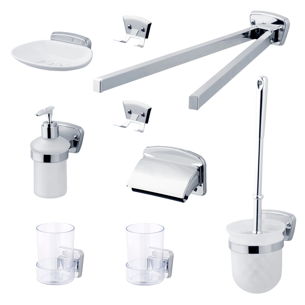 All product information Scope of deliveryHigh-quality, chrome-plated complete accessory set for a modern bathroom