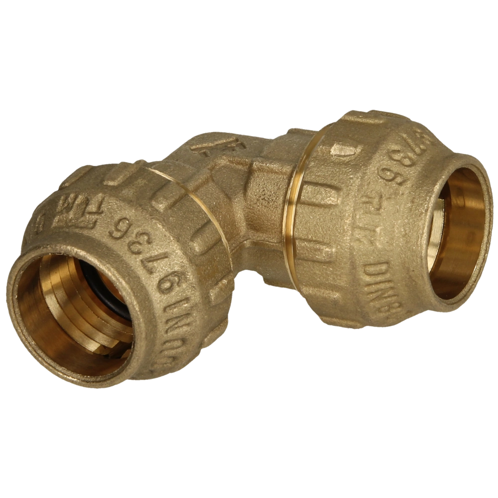 Brass compression fitting with brass compression ring for the connection of PE pipes in drinking water installations.