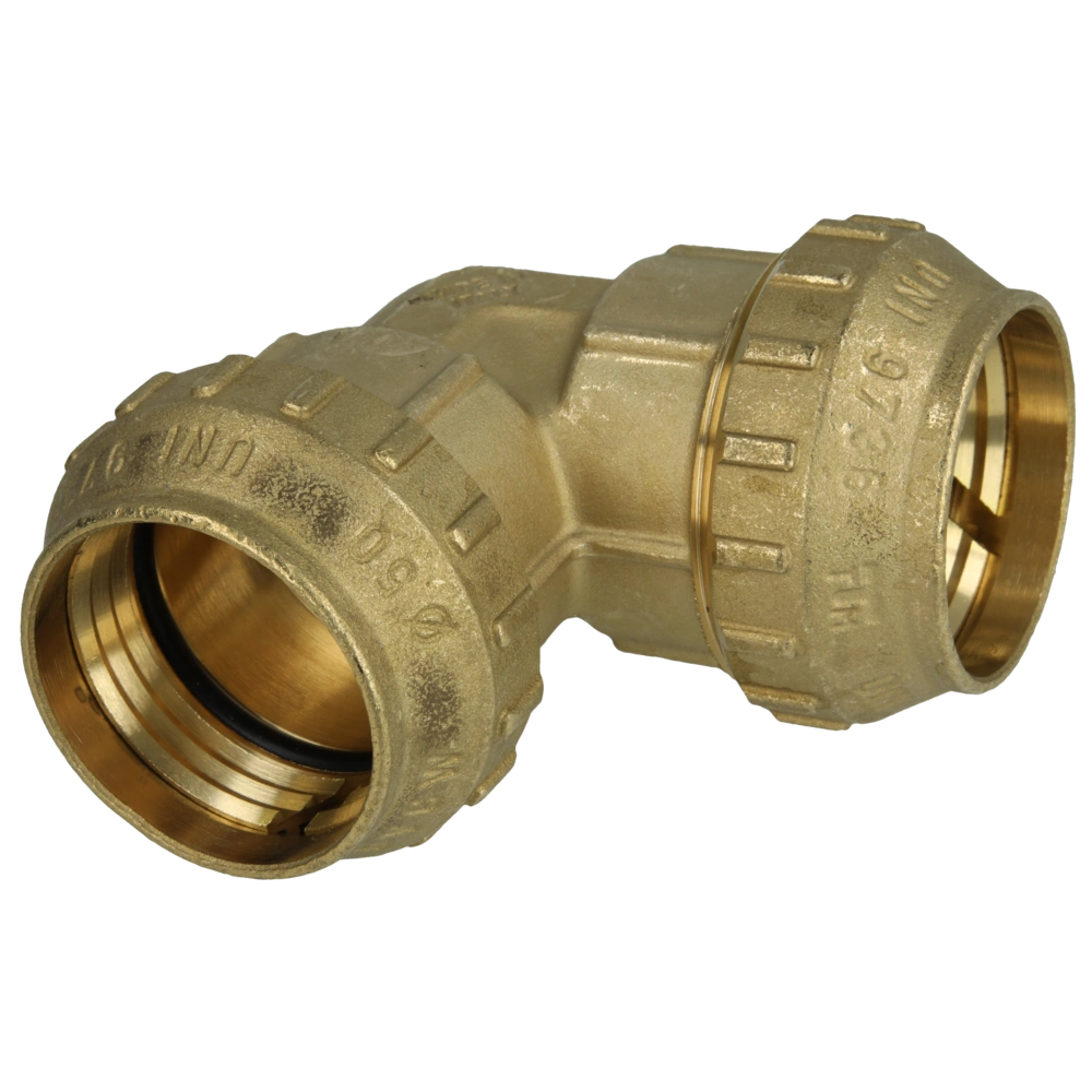 Brass compression fitting with brass compression ring for the connection of PE pipes in drinking water installations.
