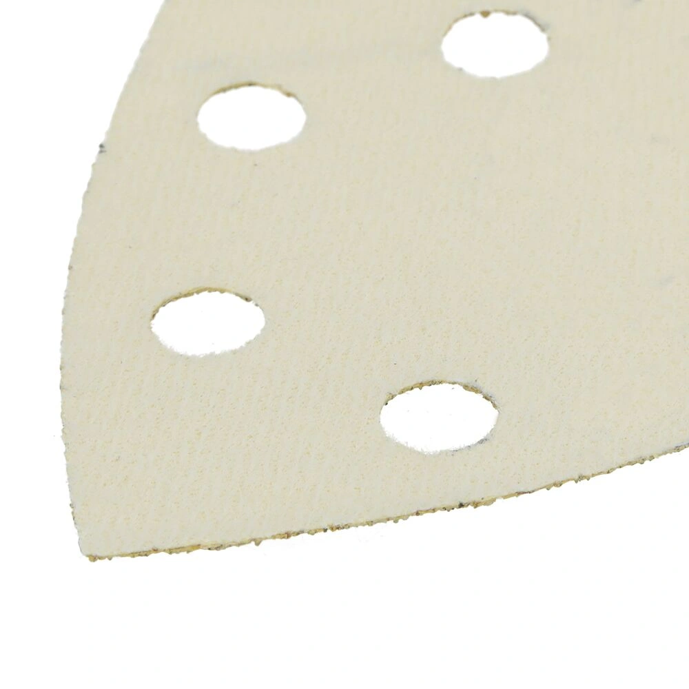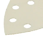 Universal abrasive triangle with 6 holes on a 52 mm radius for wet and dry sanding of paint and lacquers. The adhesive has a flexible, latex paper backing for perfect adaptability to the workpiece surfaces. Increased sanding time due to the optimised abrasive grain coating in combination with a special anti-clogging system.