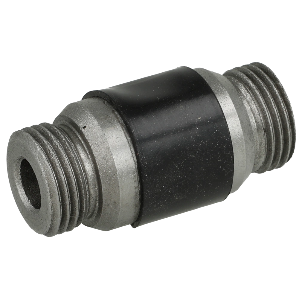 Adaptors for core drills with 1/2" BSP female thread shank, which are to be inserted on a machine with 1/2" BSP female thread shank. When the adaptor is being screwed tight, the through-hole on the side serves as counter aid. The rubber sleeve protects against dust.