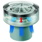 If the air admittance valve is installed in the discharge pipe, its diaphragm opens as soon as there is a vacuum. Due to the fresh air flowing into the discharge pipe, the negative pressure there is equalised, before the water is sucked out of the water trap. The valve is absolutely tight in the opposite direction. The air admittance valve is to be fitted vertically onto the wastewater pipe. It can be installed in an intermediate ceiling, in the attic, below the basin or in a ventilated wall-panel element.