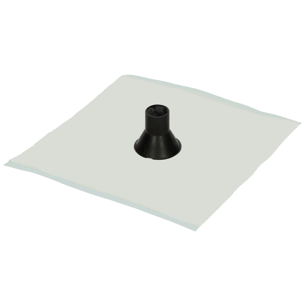 The collar is tearproof, water-repellent and ageing-resistant. It is perfectly suitable for fast and permanent sealing of roof penetrations in the building envelope. The collar is made of a flexible EPDM rubber grommet, which is connected with a self-adhesive pad made of the Tyvek® carrier material with an ageing-resistant acrylic adhesive layer.