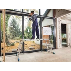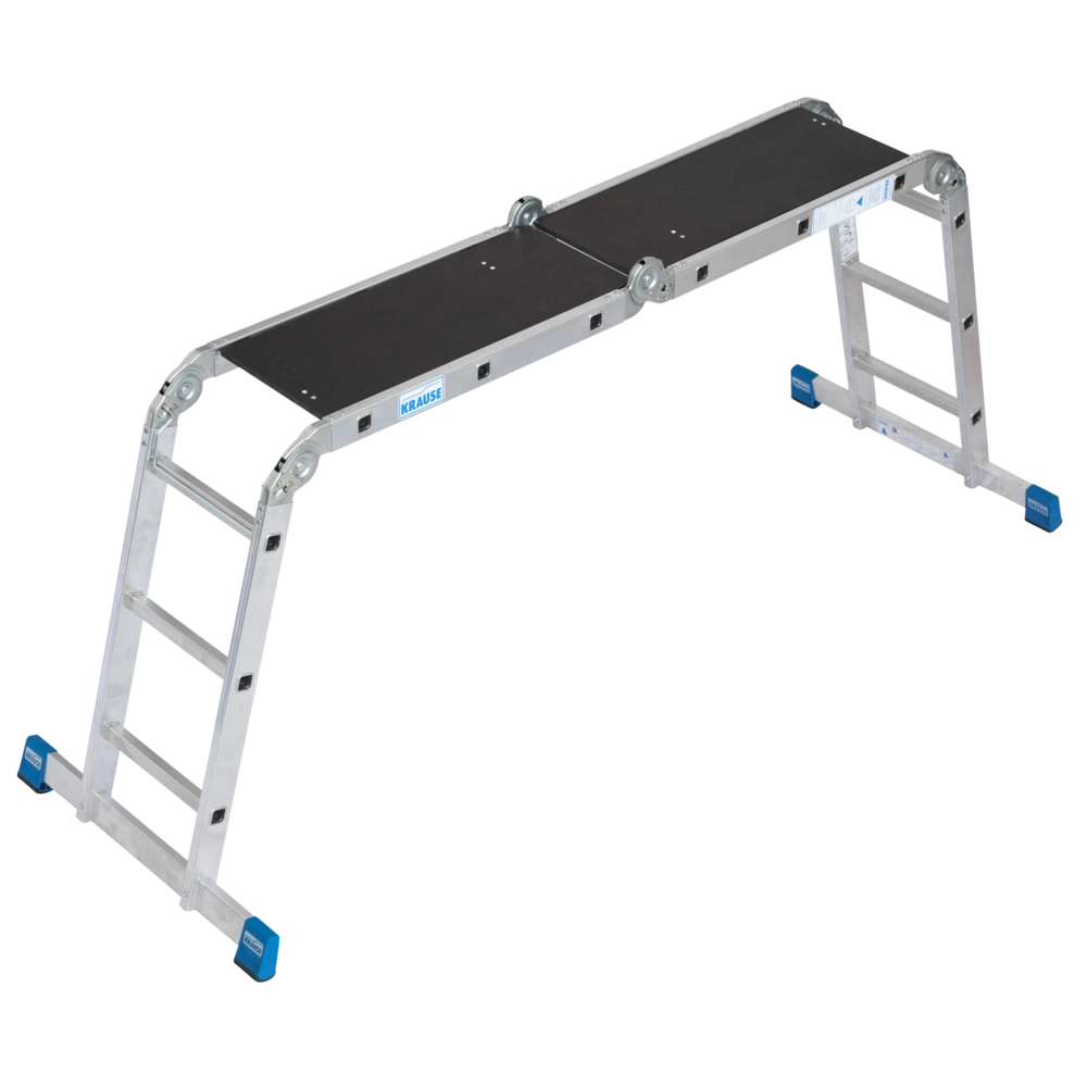 4 x 3 rungs and is used as work platform and shelf. The board provides a slip-proof and moisture-sealed work platform with a max. loadability of 150 kg.
