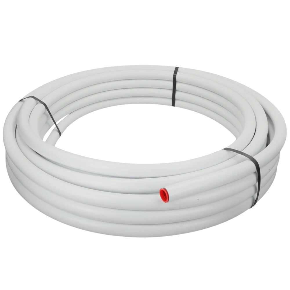 It consists of an extruded basic polyethylene pipe with aluminium jacket covered with a layer of white polyethylene for protection. This dimensionally stable, highly temperature- and pressure-resistant joint can be easily bent by hand and remains in the desired shape without springback.