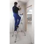 The aluminium standing ladder can be ascended from one side. It is fitted with high-strength braced step/side rail connections for a long service life and permanent professional use. The 2-component...