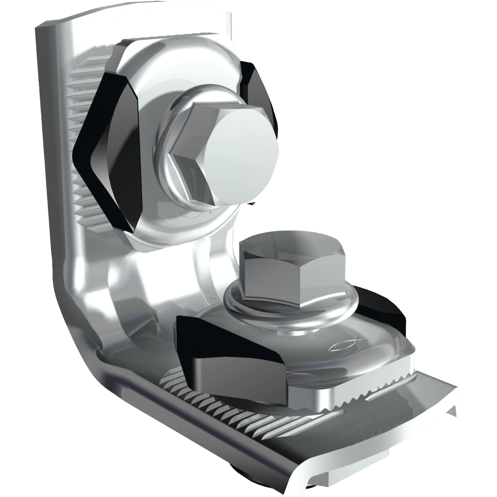Galvanised angle bracket with pre-assembled sliding nuts for fast and stable angle connections of FLS mounting channels.