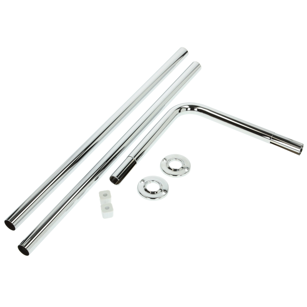 Pluggable shower curtain rail made of chrome-plated brass for 90°-installation. The stable escutcheons with 2-point fastening provide for a secure hold of the rail on the walls.