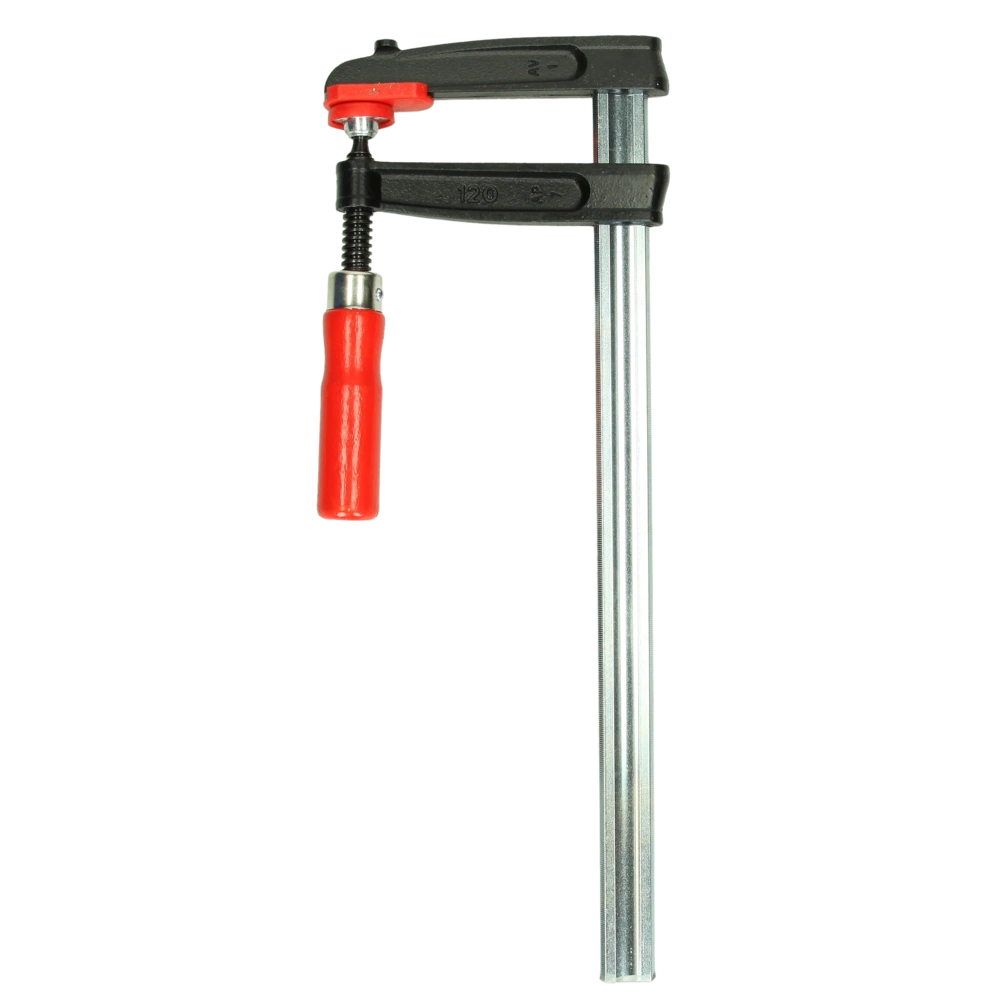 Annealed cast iron screw clamp for connecting or fixing workpieces. The screw clamp is provided with a hollow profile rail with serration against torsion forces, an ergonomically shaped wooden handle and protective caps on the clamping surfaces.