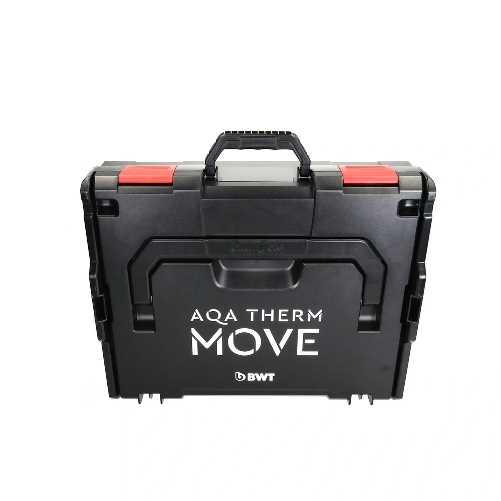 All product information Scope of deliveryAQA therm MOVE CASE connection kit for mobile BWT heating water treatment 821001118. The case contains all required components like filling unit, filter, adapter and connection hoses for the mobile reverse osmosis.