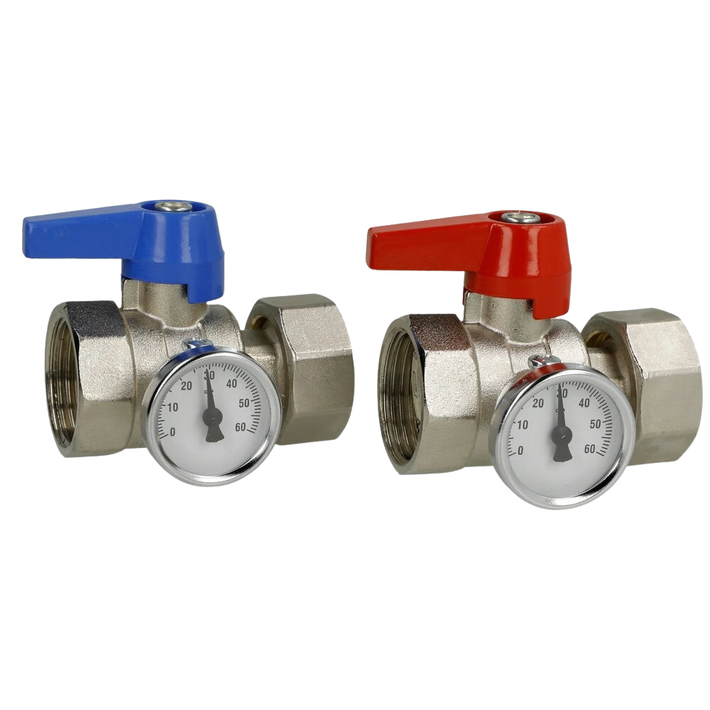 Si une version sans thermomètre est envisagée, nous recommandons l'article Ball valve 3/4" x 3/4" IT/union nut with wing handle red.