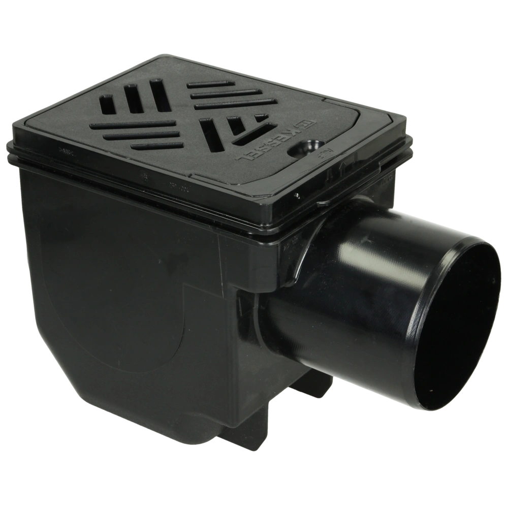 The cellar/basement drain is equipped with detachable twin-flap backwater valve, sludge trap and manually locking emergency closure. The upper section/slotted cover is made of plastic with Easy-Entry function.