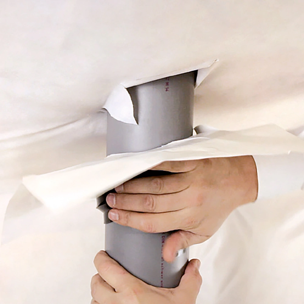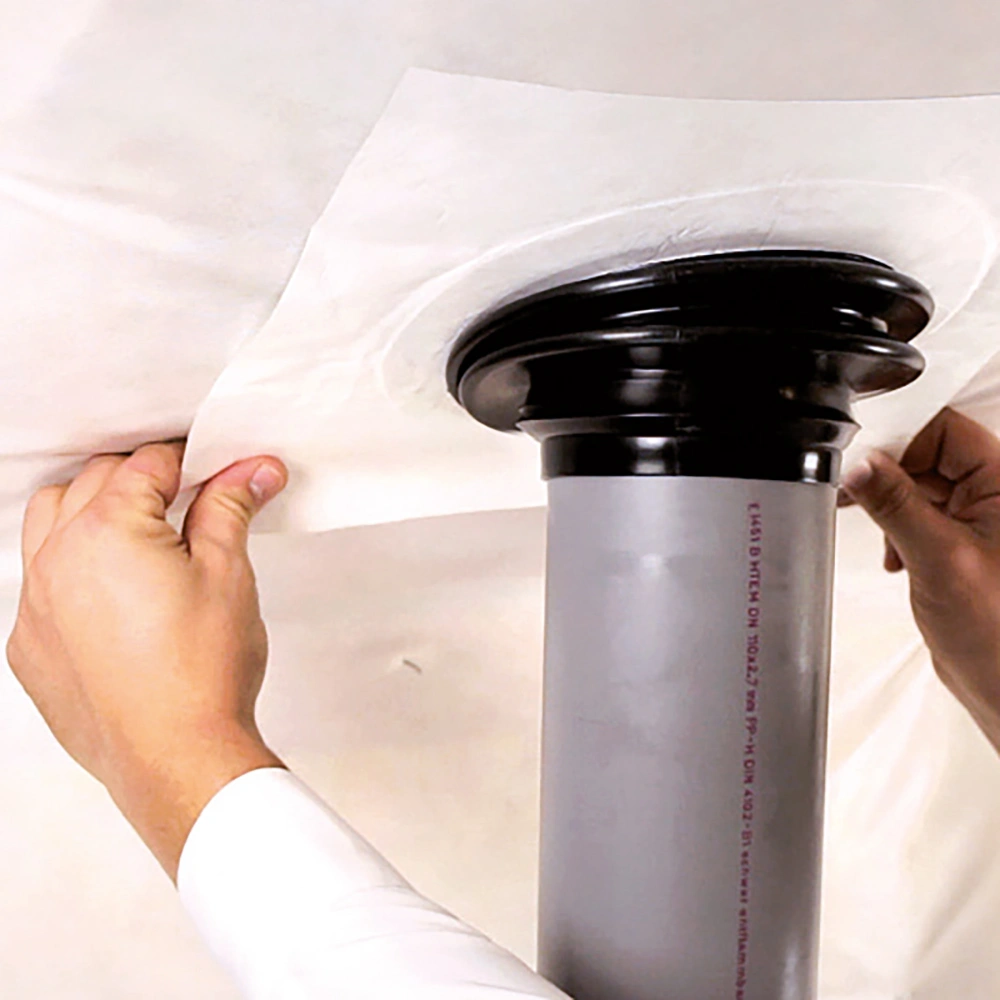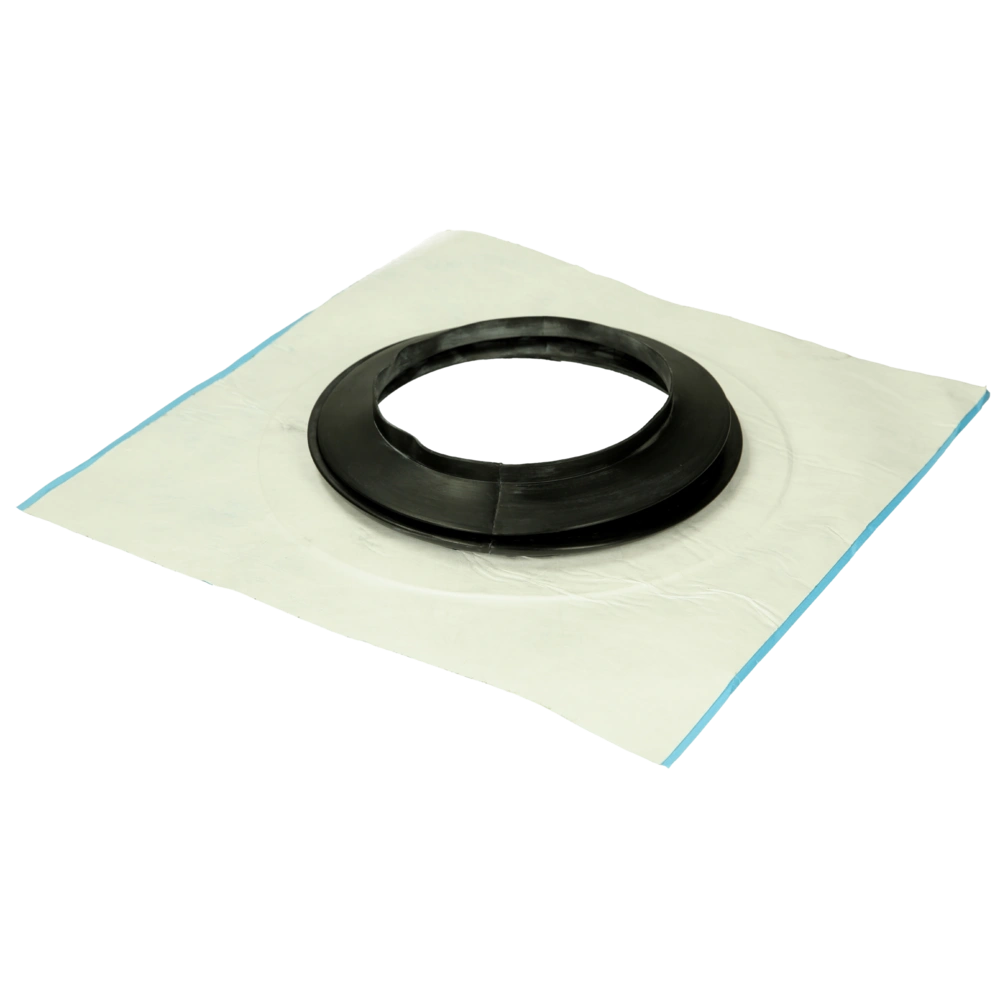 The collar designed for roof slopes of 45° roofs is tearproof, water-repellent and ageing-resistant. It is perfectly suitable for fast and permanent sealing of openings in the building envelope. The collar is made of a flexible EPDM rubber grommet, which is connected with a self-adhesive pad made of the Tyvek® carrier material with an ageing-resistant acrylic adhesive layer.