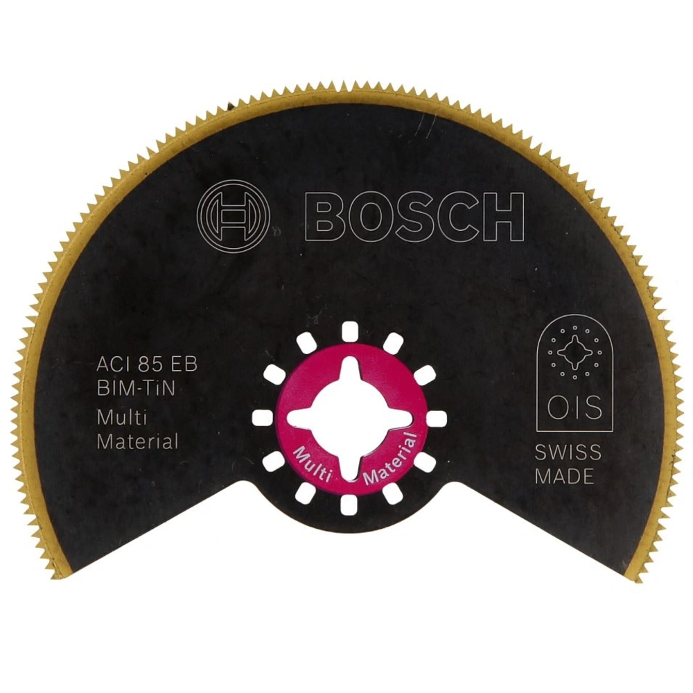 All product informationThe Bosch BiM segment saw blade ACI 85 EB is equipped with a titanium coating for a 30 % longer lifetime. The saw blades are ideally suited for plunge-cuts in gypsum plasterboard, for cutting smaller aluminium mounting rails to length and for cutting recesses in epoxy/glass fibre reinforced plastic (GRP).
