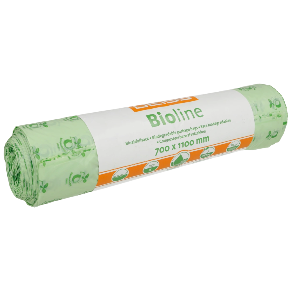 Organic waste bags for moist or wet organic waste. The film is made of over 50% renewable raw materials and is 100% biodegradable. The bags are fully compostable.
