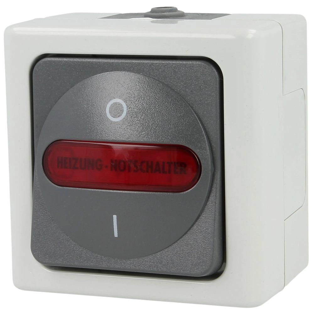 The heating main switch is suitable for humid areas and has a red illuminated label field marked with "Heizungs-Notschalter". Vertical or horizontal position is possible. The materials used...