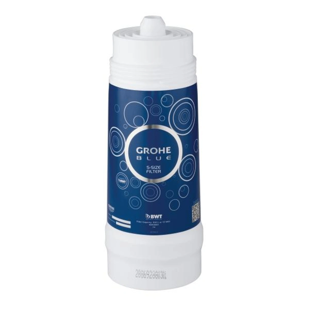 The GROHE Blue® S-size 5-phase filter is used as a replacement filter and provides a capacity of 600 litres with medium-hard water of up to 15° dH (German degree of hardness).