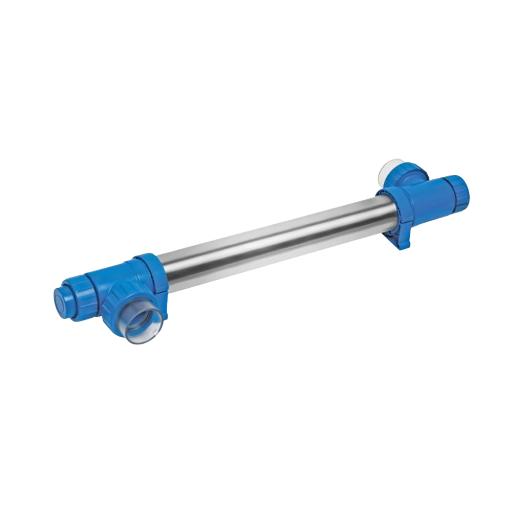All product information Scope of deliveryBlue Lagoon Tech UV-C disinfection unit for effective disinfection of the pool water. It provides for clean, fresh and crystal clear water in an environment-friendly way. The UV-C radiation neutralises bacteria, viruses and other primitive organisms and stops them from multiplying. Therefore, the amount of concentrated chlorine can be reduced by 50 - 80%. Chlorine smell, irritations of the skin and red eyes will be eliminated. Additionally, the inner stainless steel side causes a reflection of the UV-C radiation and, as a result, increases the UV-C yield by up to 35%. A built-in electronic ballast ensures a smooth and constant power supply.