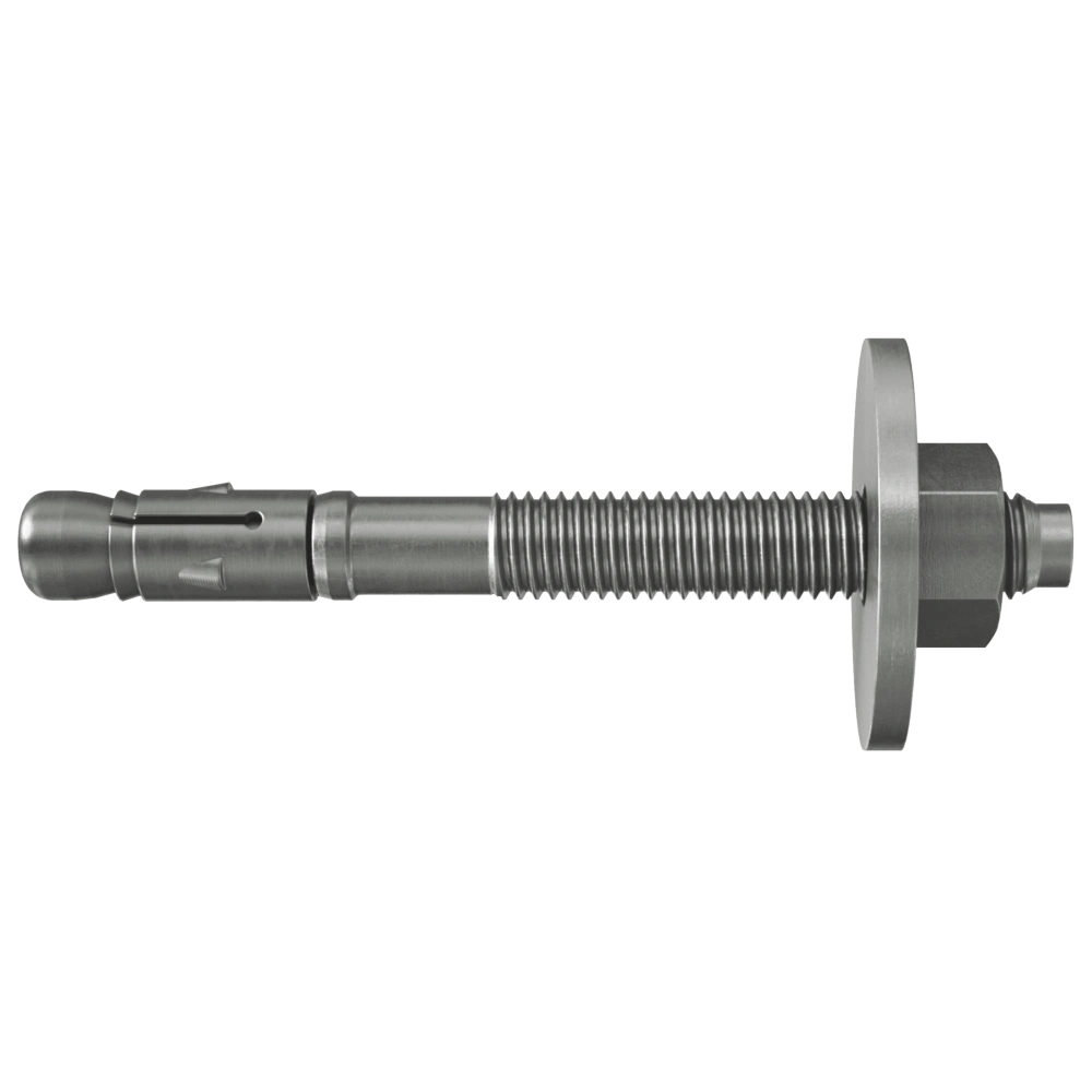 Bolt anchor made of corrosion-resistant steel with preassembled washer for all standard fixings in cracked and uncracked concrete. Two anchorage depths provide for a flexible mounting. In case of an aborted drill hole, the anchor can be screwed out again so that the concrete surface remains even. The anchor can be reused if a new drill hole is created with a minimum distance of twice the depth, or in less distance if the aborted drill hole is filled with high-strength mortar.