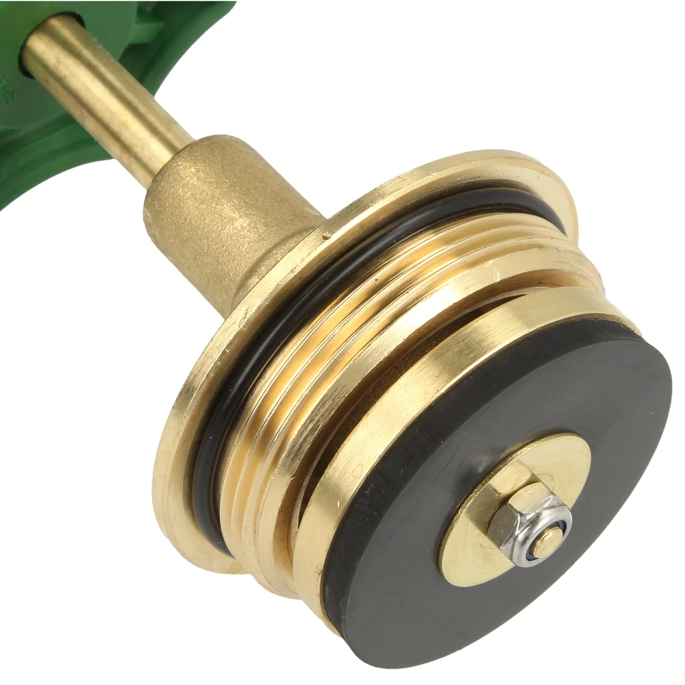 The bonnet features a grease chamber without dead zone in the rising stem. It provides no room for stagnation water, germs or limescale and is therefore considered as legionella-safe. The hand wheel is made of tough, very hard and rigid plastic.