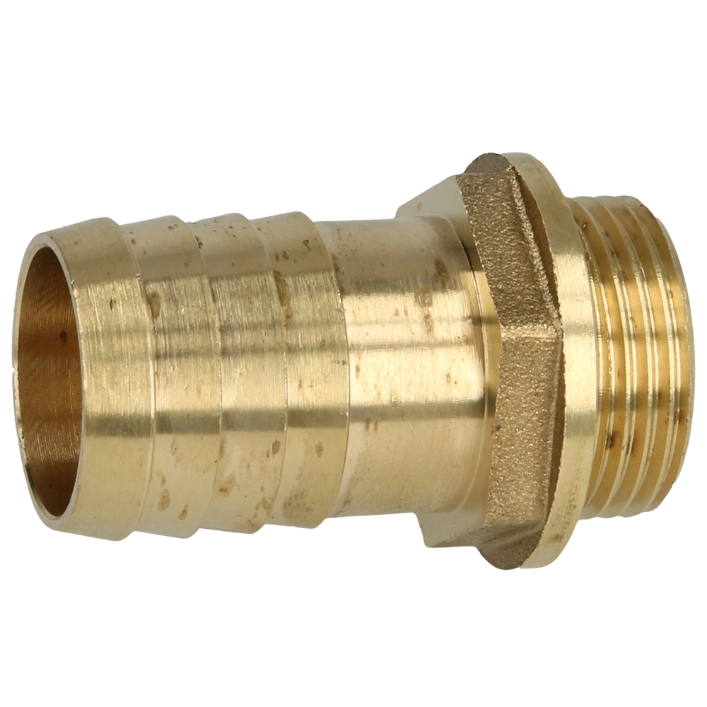 Brass nozzle with hexagon for the connection of 1" hoses to taps with 3/4" female thread.