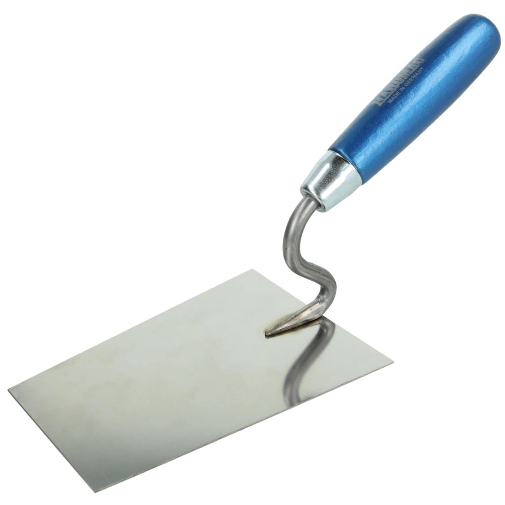 The brick trowel is used when doing masonry work for applying mortar as well as for minor plaster works. The combination of a handle made of beech wood and the stainless steel for blade and angel ensure a long life of the trowel.