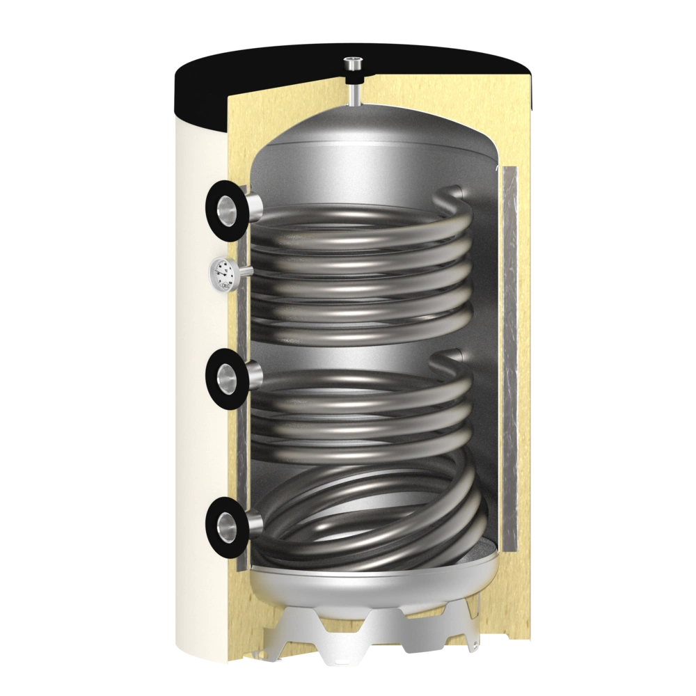 Buffer storage tank 150 litres with 2 smooth-pipe heat exchangers: tmin-container [°C]: 20