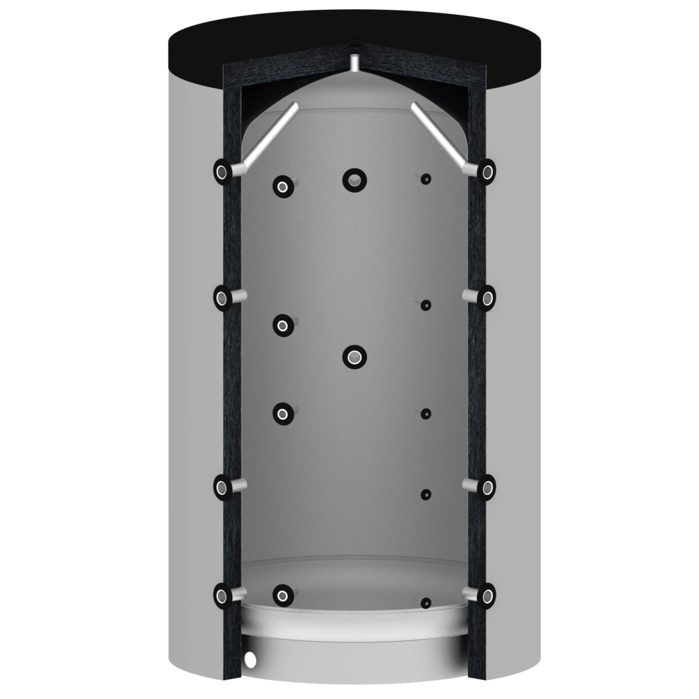 Premium buffer storage tank for highest demands on heat storage and efficiency. Thanks to its highly efficient insulation, heat retention loss is significantly reduced compared to standard storage tanks...