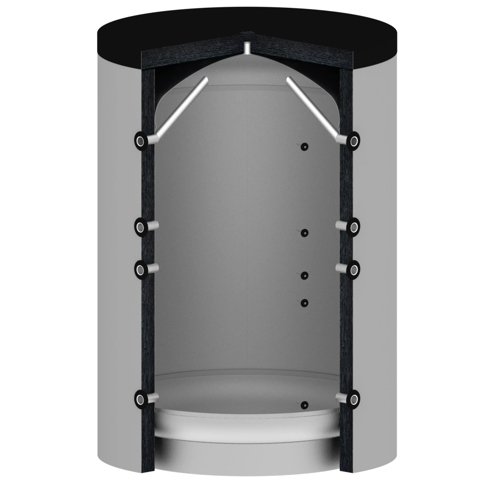 Premium buffer storage tank for highest demands on heat storage and efficiency. Thanks to its highly efficient insulation, heat retention loss is significantly reduced compared to standard storage tanks...