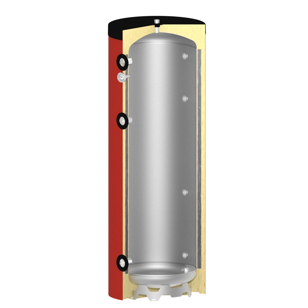 Premium buffer storage tank for highest demands on heat storage and efficiency. Thanks to its highly efficient insulation, heat retention loss is significantly reduced compared to standard storage tanks...